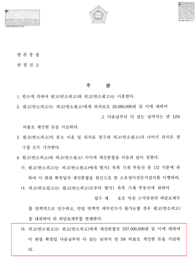 법원은 당사자들의 혼인기간, 재산 형성 과정에서의 기여도, 혼인관계 파탄의 책임 등을 종합적으로 고려했습니다. 특히 주목할 만한 점은 법원이 전업주부의 가사노동 가치를 충분히 인정했다는 것입니다. 의뢰인은 최근에야 일을 시작했지만, 오랜 혼인생활 동안 자녀 양육을 위해 전업주부로 지내왔습니다. 법원은 비록 직접적인 소득활동은 하지 않았지만, 가정 내에서의 노력이 남편의 재산형성에 상당한 기여를 했다고 인정했습니다. 또한 혼인관계 파탄의 책임이 남편에게 있다고 보아 위자료까지 인정했으며, 최종적으로 5억 원이 넘는 재산분할액이 인정되었습니다.