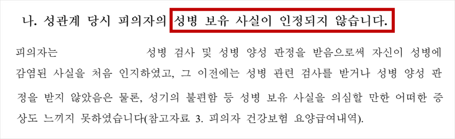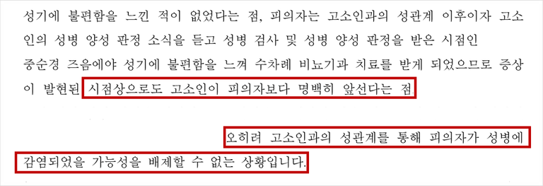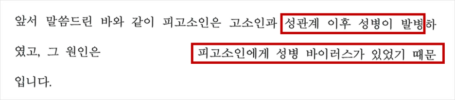 성볌 감염에 따른 상해 고소 사건에서
