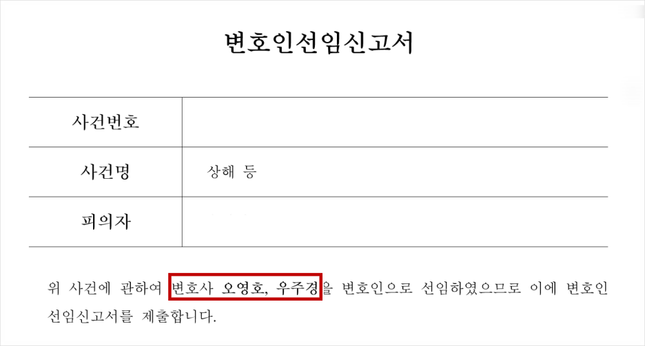 법무법인 근본 오영호, 우주경 변호사 변호인선임신고서
