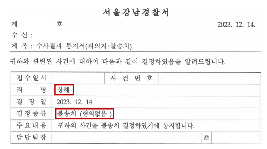 결국 의뢰인은 혐의없음(불송치) 처분을 받아