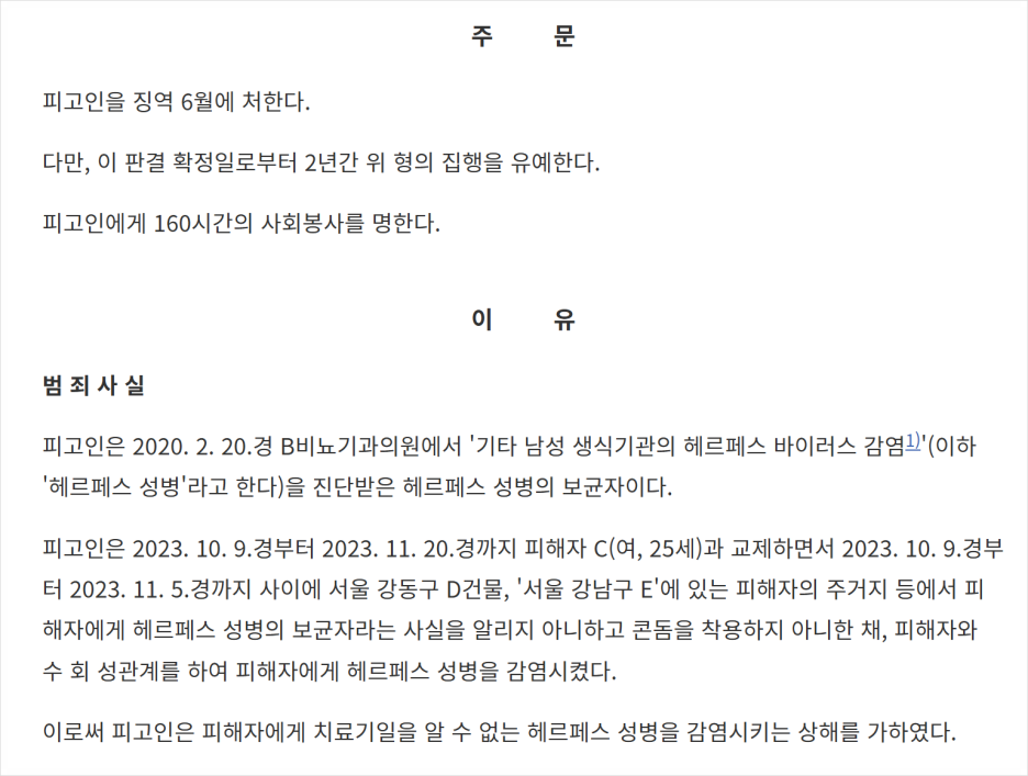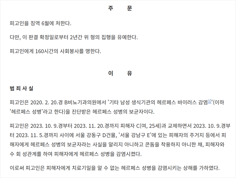 피해자에게 헤르페스 성병을 감염시켰다.