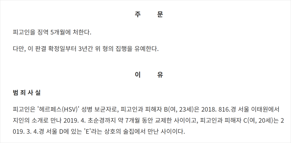 피고인이 헤르페스 관련