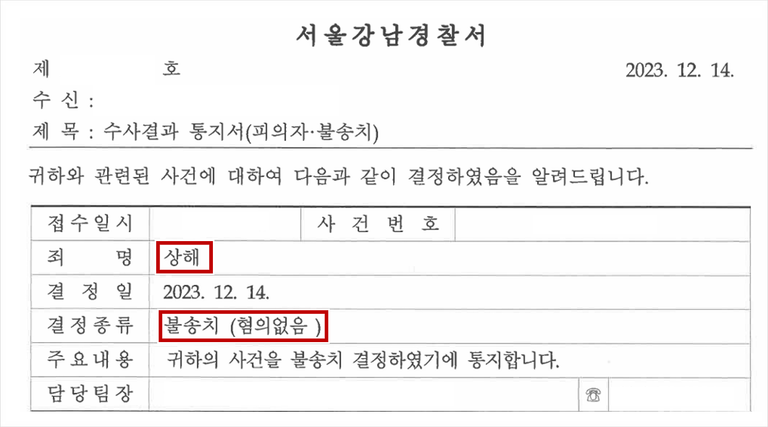 "혐의없음(불송치)" 결정을 받은 과정을