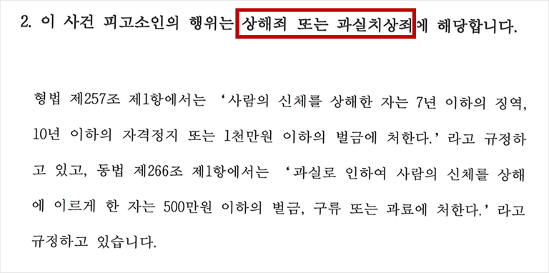 상해죄나 과실치상이 될 수 있나요?"