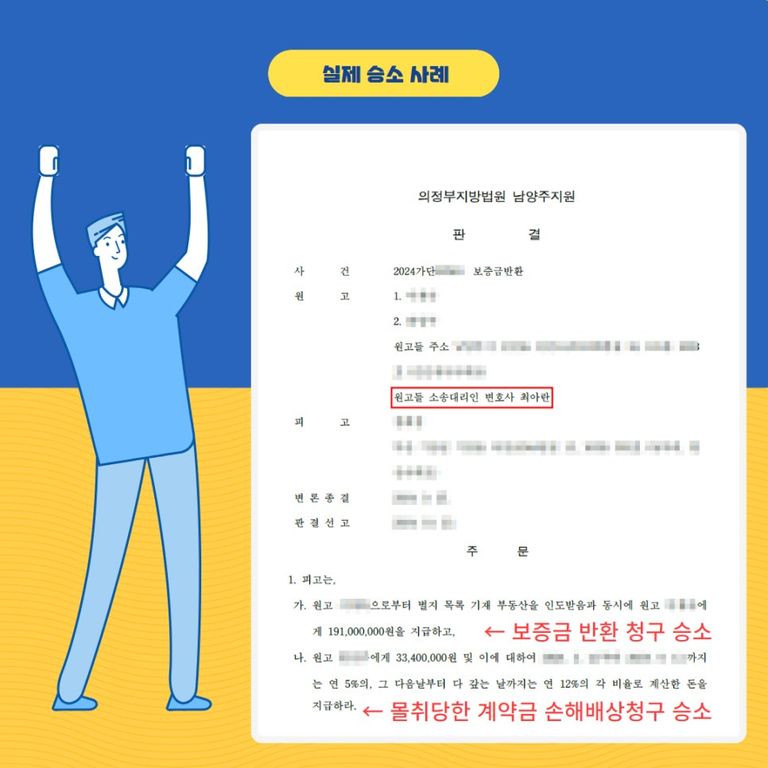 그리고 의뢰인은 3,400만 원이라는 계약금을 그대로 몰취당했습니다.
