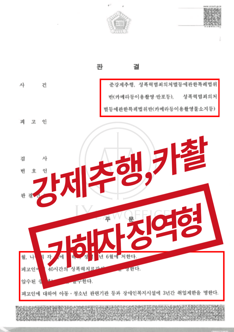 [성공사례] 준강제추행,카촬 피해자 사례 - 가해자 징역형