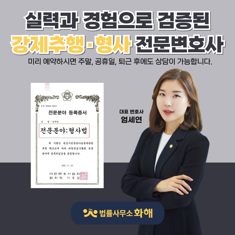 강제추행의 피해자로서 아픈 기억과 고통을 안고 경찰 조사를 받는다는 것은 결코 쉬운 일이 아닐 것입니다. 그러나 강제추행을 당하고도 두려움에 떨며 내가 당연히 누려야 할 일상생활과 행복을 누리지 못하고 있다면 법률사무소 화해로 전화해 주세요. 단순한 법률 조력이 아닌 강제추행 피해자의 마음을 진심으로 이해하고 공감하며 제대로 된 법적 대응으로 강력하게 보호해 드릴 수 있는 법률사무소 화해 형사 전문 변호사가 의뢰인의 곁을 함께 하겠습니다.