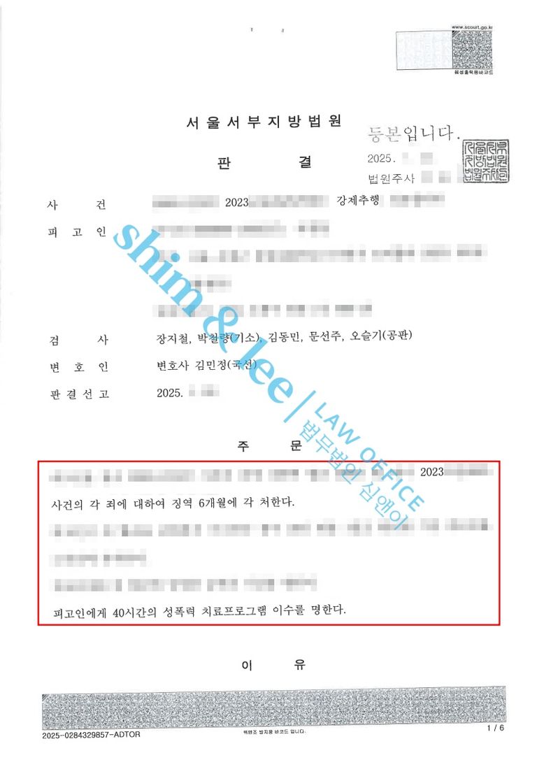 - 결과적으로 가해자는 징역 6년, 40시간 성폭력 치료 프로그램 이수 명령을 받고, 법정에서 즉시 구속되어 실형을 선고받았습니다.
