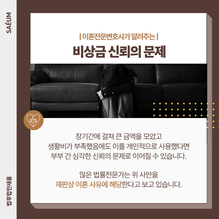 물론 배우자가 말하기 어려운 사정이 있어 비상금을 마련했다면 어느 정도 이해할 수 있습니다. 그러나 장기간에 걸쳐 상당한 금액을 모았고, 이를 개인적으로 사용했으며, 그로 인해 가정의 생활비가 부족했다면 이는 심각한 신뢰 문제로 이어질 수 있습니다.