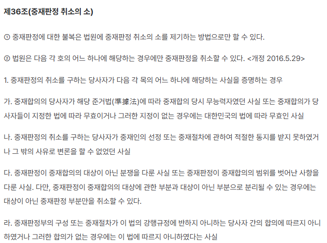국내 중재기관은 대한상사중재원입니다. 코엑스 건물에 있습니다. 법정에 소장을 내면서 진행되는 소송과 달리 중재는 이곳에 중재신청서를 내면 시작됩니다. 소송은 1,2,3심을 거쳐 확정되지만 중재는 단심입니다. 그만큼 시간이 절약되고 비용도 절감됩니다.