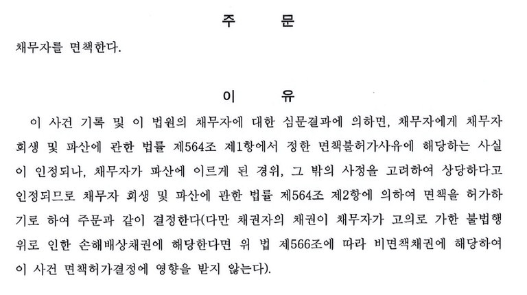 다만 위와 같은 사유가 있다고 하여도 파산에 이르게 된 경위, 그 밖의 사정을 고려하여 상당하다고 인정되는 경우에는 예외적으로 면책을 할 수 있고 이를 재량면책이라고 합니다.