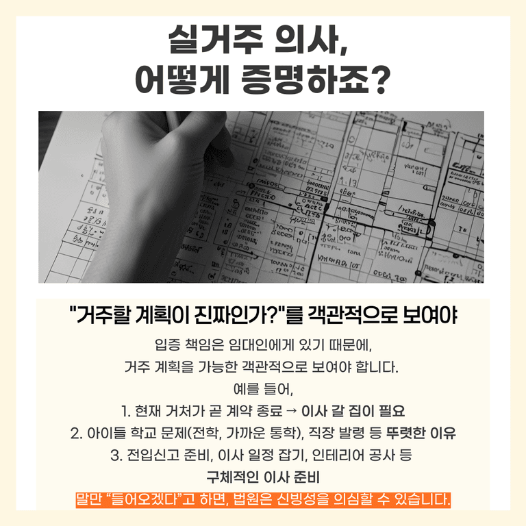 법적 원칙: 집주인이 “내가 실거주하겠다”고 주장하면, 이를 입증해야 하는 책임은 집주인에게 있습니다.