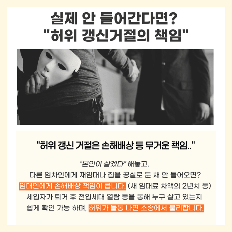 하지만 거짓말로 갱신을 막으면 결국 법적 분쟁과 손해배상 위험에 노출됩니다.
