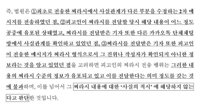 다만 이 사실 적시를 법적 기준으로 상세히 살펴봐야 할 여지가 있는데요.