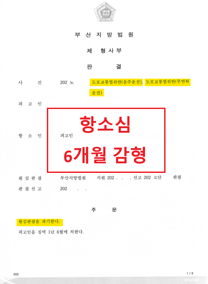 1심보다 [6개월 감형]된 판결을 받게 되었습니다.