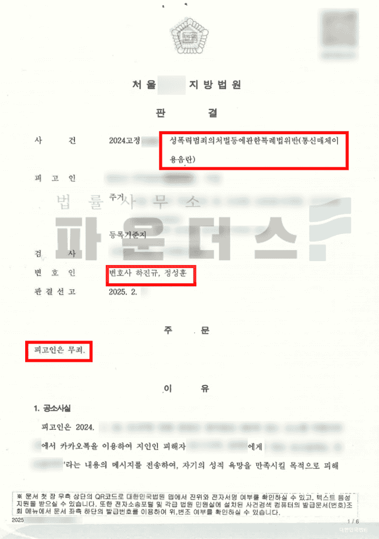 그 결과 의뢰인은 통매음 약식명령 이후 무죄판결을 받아 사건을 마무리 지을 수 있었습니다.