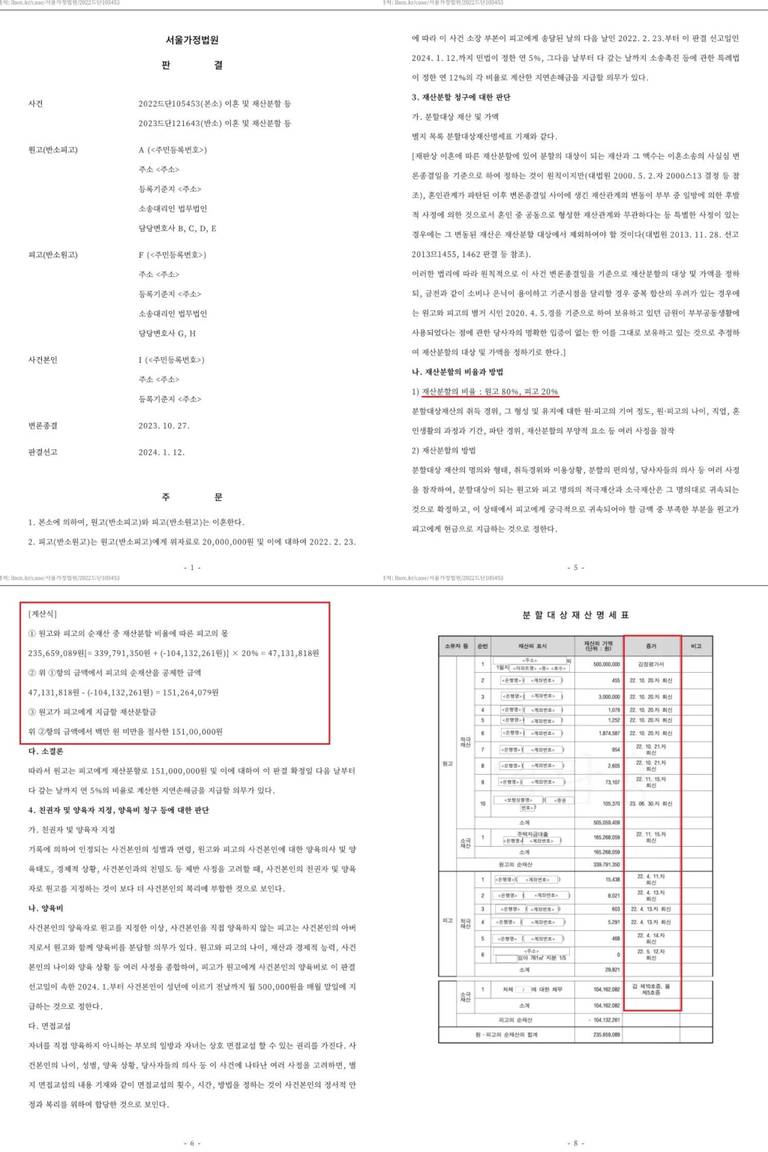 [감정평가서와 금융거래정보제출명령신청에 따른 회신에 기초하여 분할대상재산명세표를 작성하였고, 원고와 피고의 재산분할의 비율을 원고 80%, 피고 20%로 판단한 사례 : 서울가정법원 2024. 1. 12. 선거 2022드단105453(본소), 2023드단121643(반소) 판결]