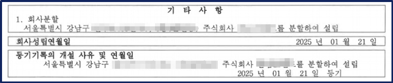 분할회사 변경등기, 분할신설회사 설립등기 신청