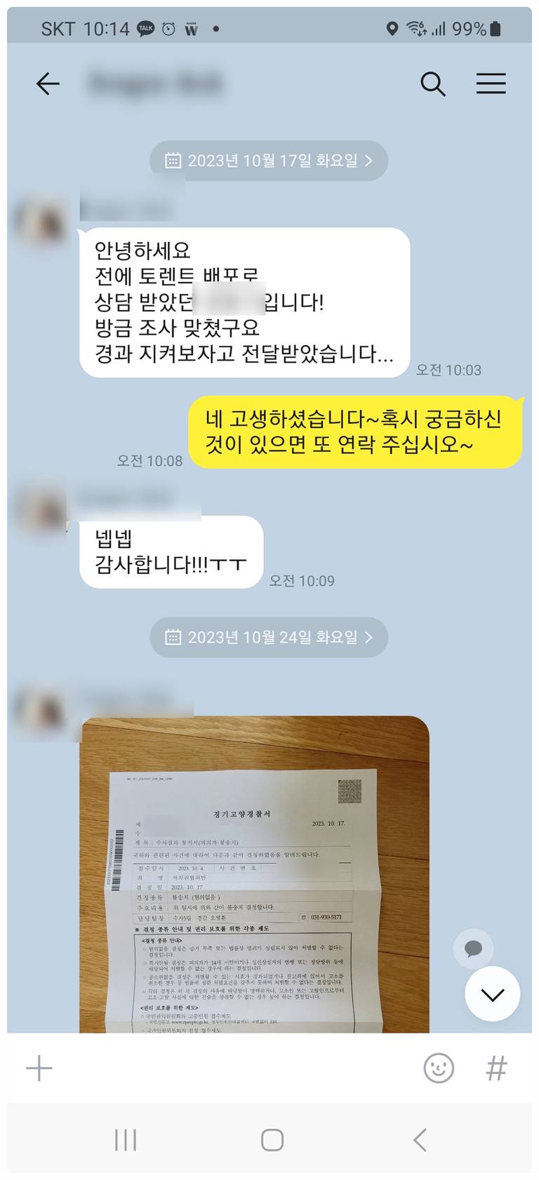 경찰 조사 연락받으셨나요?