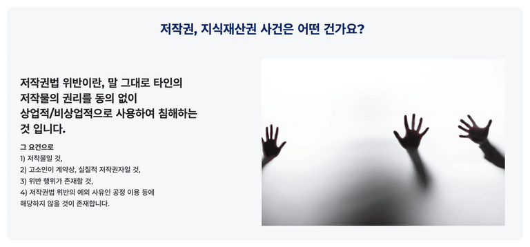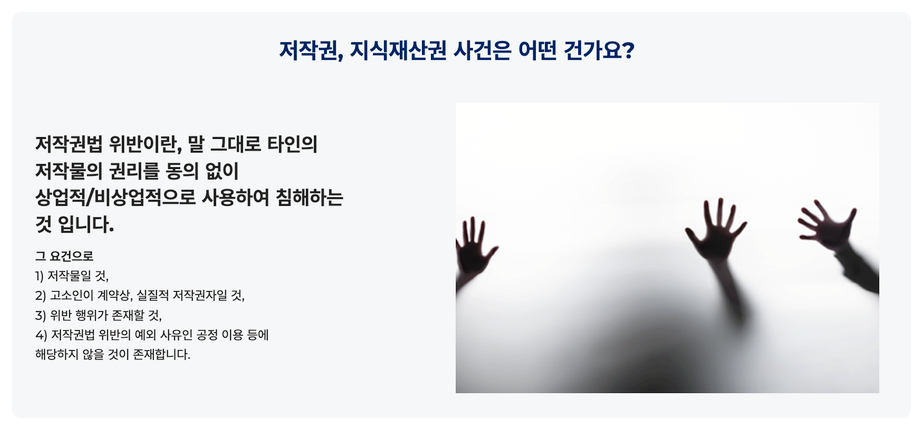저작권법을 책임지고 있는 로펌으로서 핵심 요건을 정리해 드리고 무혐의를 이끌 노하우를 정리해 드릴 예정이오니,