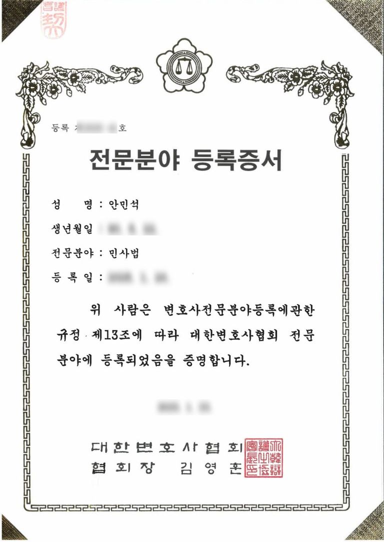 대한변호사협회 인증 민사법 전문변호사