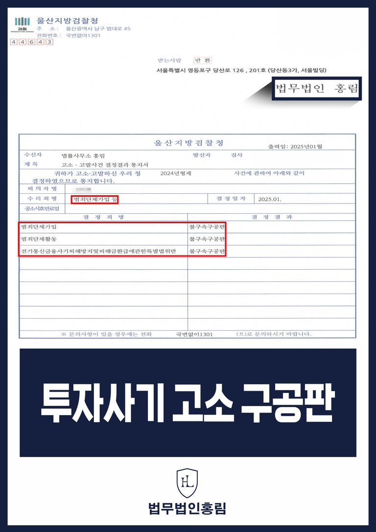 그 결과 수사기관은 피의자를 검거후 사건을 '불구속구공판' 결정하였습니다.