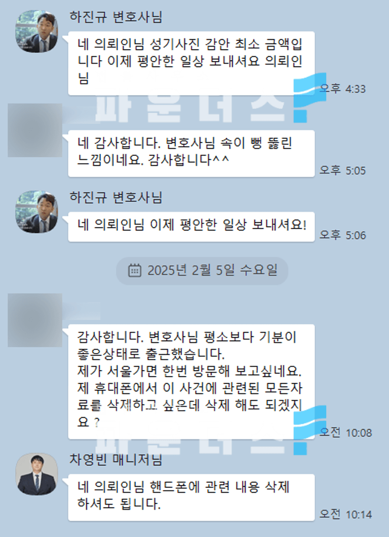 본 사건은 헌터가 자신의 범행을 지우려 의뢰인에 지속적으로 대화내용 삭제를 요구한 것으로 헌터 범행의 명확인 증거가 없어 고소에 이르렀다면 어려운 상황에 놓일 가능성이 높은 사안이었습니다.
