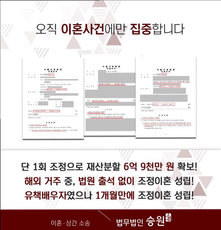 이에 신청인(의뢰인)께서는 최대한 본인에게 유리한 재산분할 합의를 이끌어내기를 희망하시면서, 저희 법무법인 승원에 황혼이혼조정 사건을 의뢰해 주셨죠.