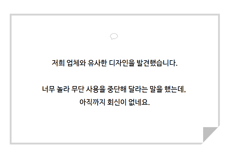 주변 사람들의 제보나 우연한 계기로 디자인 카피 사실을 알게 되어 저를 찾아 주시기까지 매우 복잡한 마음이 앞섰을 거라는 생각이 듭니다.