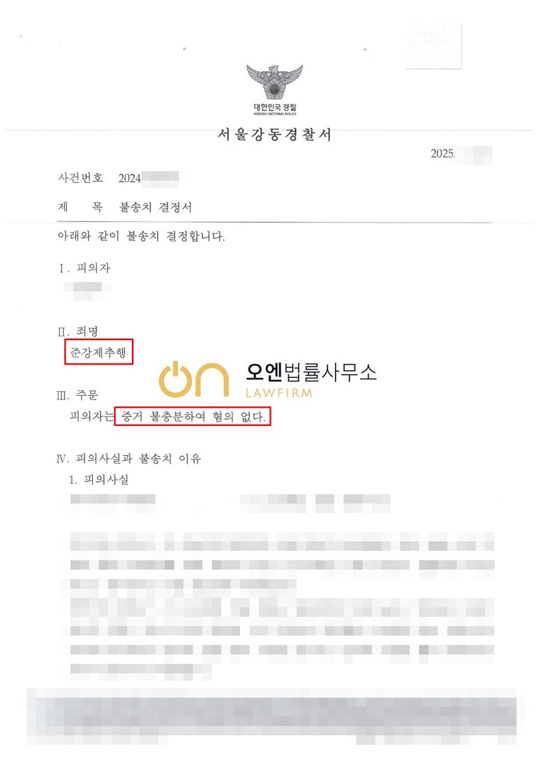 경찰은 이러한 변호인의 주장을 받아들여 혐의없음의 불송치 결정을 하였습니다.