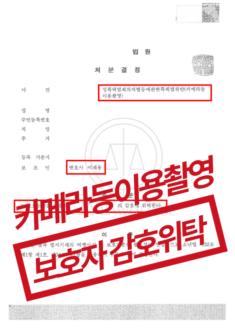 [성공사례] 카메라등이용촬영 - 소년보호 1호처분(보호자 감호위탁)