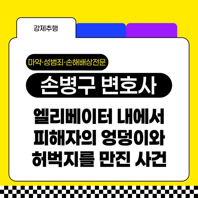 의뢰인은 업무차 교육을 받으러 갔다가 알고 있던 사람과 함께 엘리베이터를 탑승하게 되었는데, 그때 피해자의 엉덩이와 허벅지 등을 터치하게 되었고, 이에 피해자로부터 고소를 당하여 강제추행죄로 수사기관에서 조사를 받게 되었습니다.