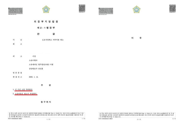 ▶판결결과 - 피고(지자체) 승소