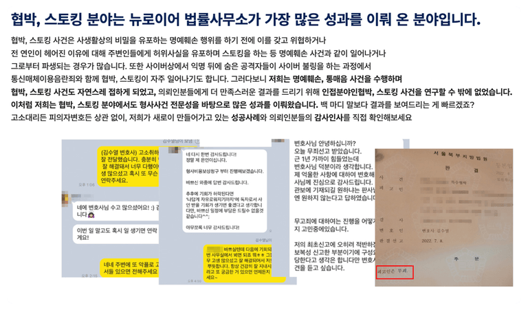 저희가 협박죄와 특수협박죄 다양한 케이스에서 무혐의/무죄를 이끈 경험을 바탕으로