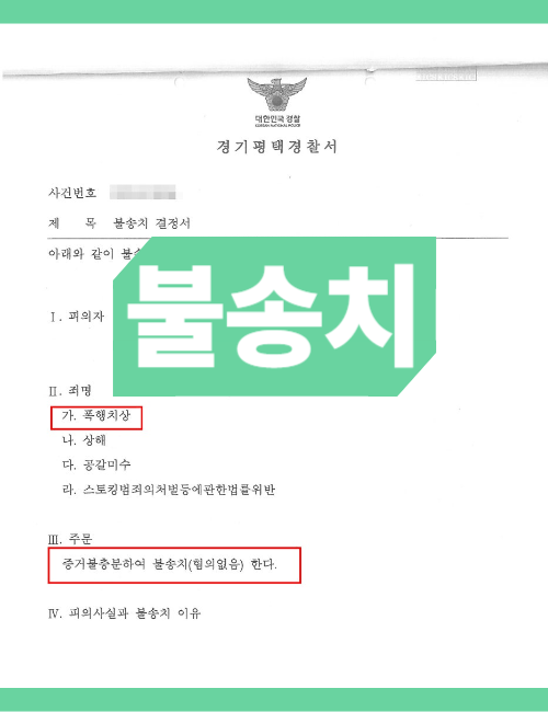 법무법인 새움은 이를 입증하기 위해 진단서, 피해 사진, 녹취록, 대화 내역, 진술 조서, 112 신고 사건처리표, 변호사 의견서 등을 제출하였고, 최종적으로 증거 불충분으로 불송치 처분을 받을 수 있었습니다. 특히, A씨의 휴대전화 통화 기록을 분석하여 B씨 역시 적극적으로 연락을 주고받았다는 점을 입증한 것이 결정적인 역할을 했습니다.