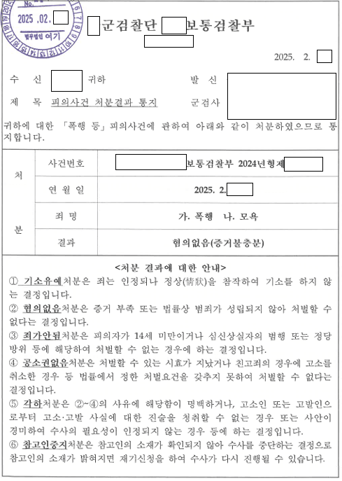 오늘은 군검찰 단계에서 혐의없음을 받은 성공사례를 포스팅합니다. 최근 군대에서는 피해자들을 위한 각종 제도가 상당히 괜찮게 마련이 되어있습니다. 그래서 누구든지 신고를 하면 우선 신고자(피해자)로서 각종의 보호를 받을 수 있게 됩니다. 그러다보니 병사들이나 간부들을 막론하고 일단 누가 마음에 안드는 경우 신고를 먼저 하는 경우가 많이 발생합니다.