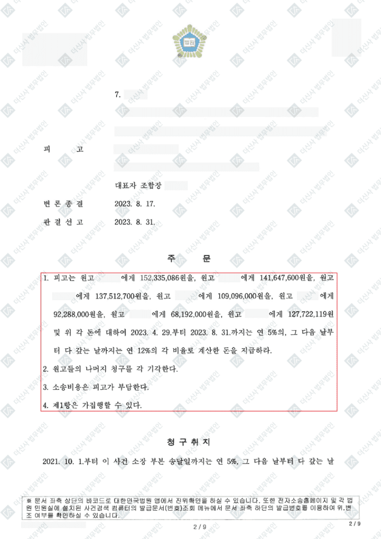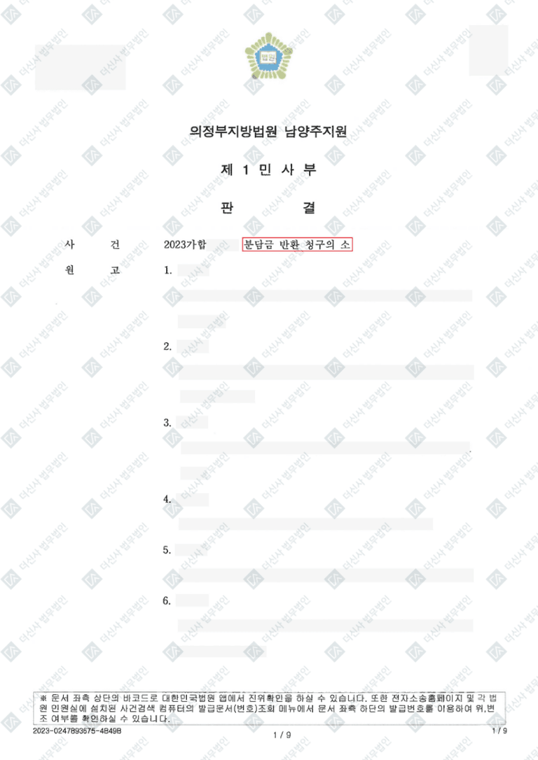 [🎖️분담금반환청구 집단소송 승소 사례]