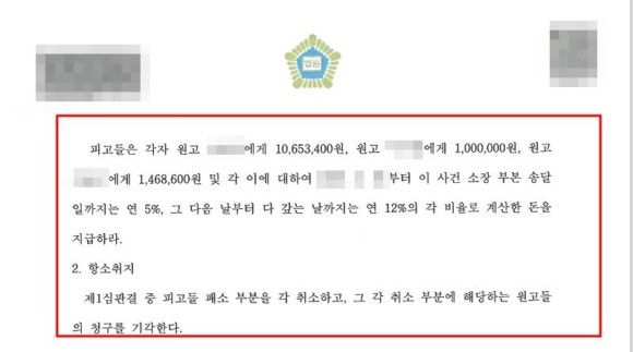 1심은 천만원이 넘는 손해배상금의 판결을