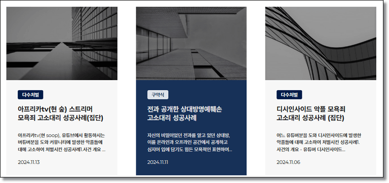 뉴로이어 명예훼손 모욕죄 고소대리 성공사례 중 일부 - 홈페이지에 더 많은 성공사례들이 있어요 :)