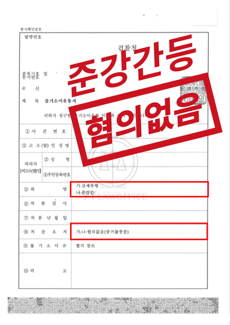 이러한 변호인의 조력에 따라, 의뢰인은 준강간,강제추행의 모든 혐의를 벗고 수사기관으로부터 혐의없음(증거불충분)의 불기소처분을 받을 수 있었습니다.