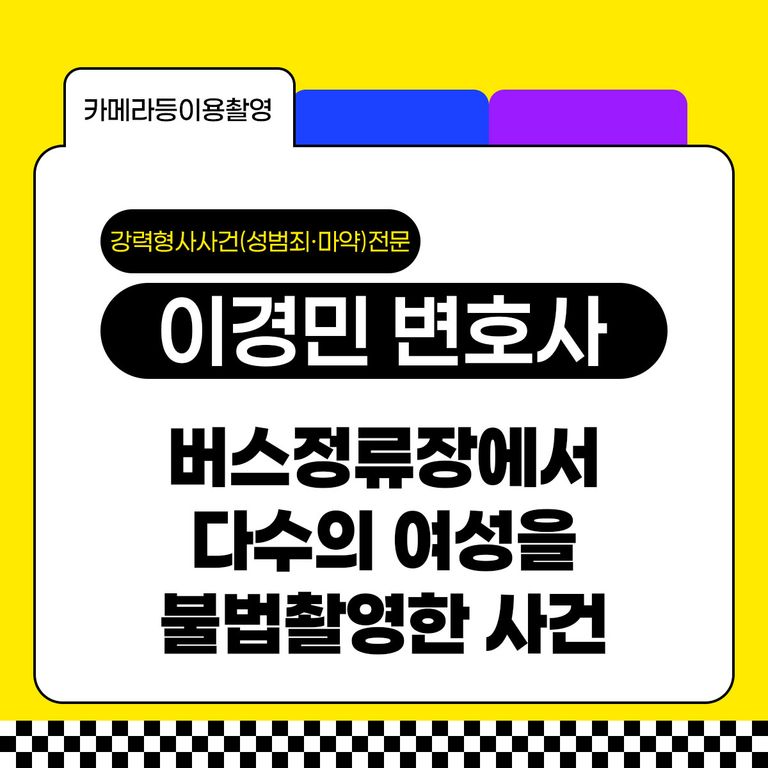 의뢰인은 버스정류장에서 다수의 여성을 대상으로 불법촬영한 사실로 성폭력범죄의처벌등에관한특례법(카메라 등을 이용한 촬영)으로 수사기관의 조사를 받게 되었습니다.