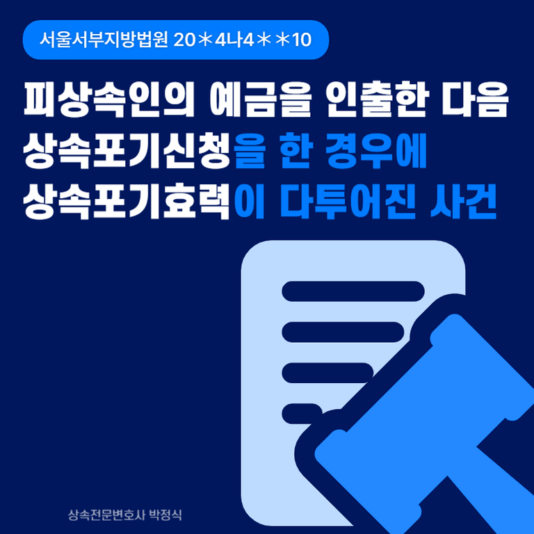 그런데 상속포기를 하기 이전에 피상속인의 예금을 인출하였는데, 이렇게 상속포기효력이 발생하기 전에 예금인출을 하게 되면 단순승인이 되어 상속포기를 무효가 되는지 다투어진 사건입니다.