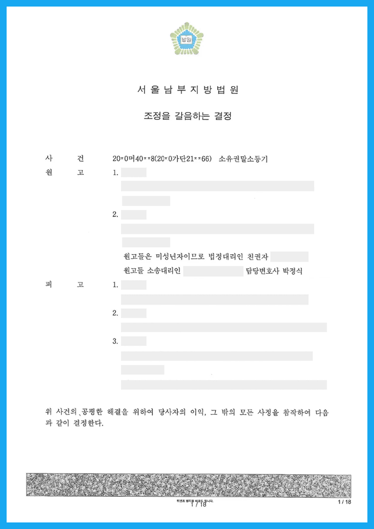 ③ 다만, 원고들의 후견인으로서 원고들이 상속포기를 하도록 하고, 피상속인의 부동산을 원고들의 조부가 상속하여 이를 제3자에게 매각하도록 한 것은 한 것은 미성년후견인으로서의 대리권을 남용한 것으로 볼 수 있어, 원고들에게 손해배상을 할 책임이 있다고 보아, 위 부동산 매각대금 중 원고들을 위해서 사용한 금액을 제외한 일정금액을 원고들에게 반환하도록 하는 조정을 갈음하는 결정이 난 사안입니다.