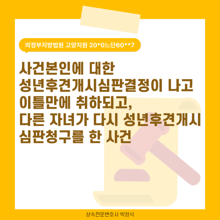 이후 약 2년이 지나서 장남인 청구인이 사건본인에 대한 성년후견개시심판청구를 다시 제기한 사안입니다.