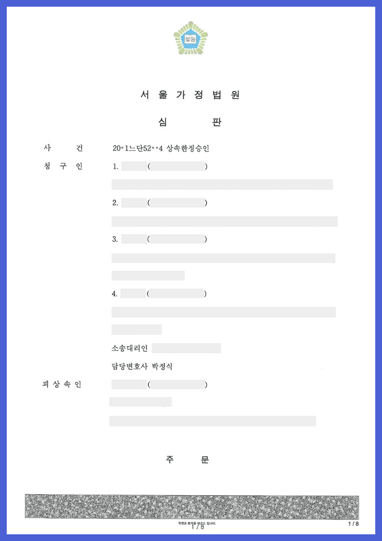 이에 청구인들은 위 상속채무가 실제 존재하는 채무인지 여부에 대해서는 위 대여금청구소송에서 구체적으로 다투기로 하고, 우선 실제로 대여금 채무가 존재하는지는 알 수 없는 상황이라서 피상속인의 재산에 대해서 특별상속한정승인심판 청구를 제기한 사건입니다.