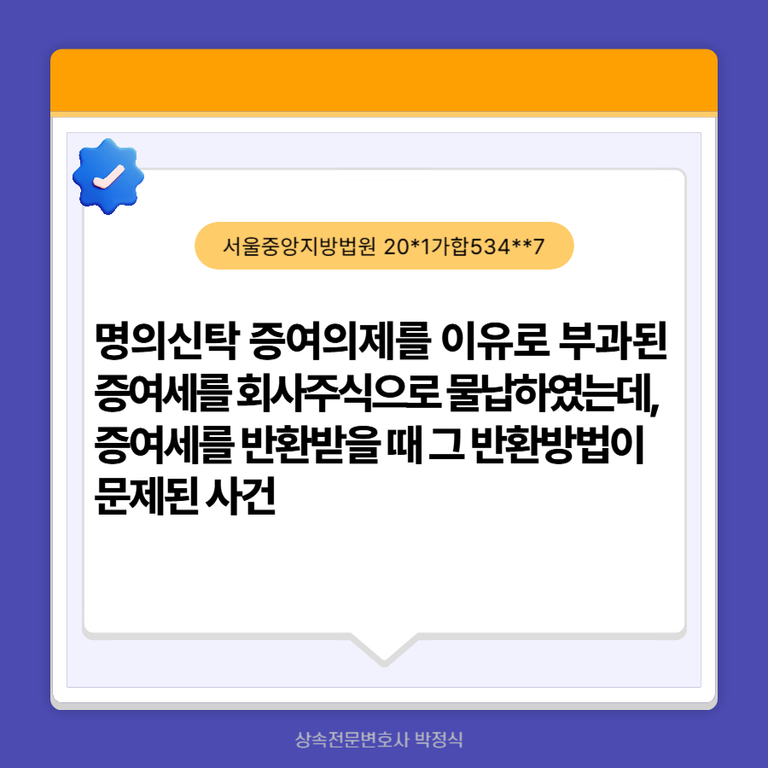 원고는 다른 사람에게 주식을 명의신탁하였다는 이유로 명의신탁재산의 증여의제에 따른 증여세를 부과받았는데, 당시 증여세를 회사 주식으로 물납하였습니다.
