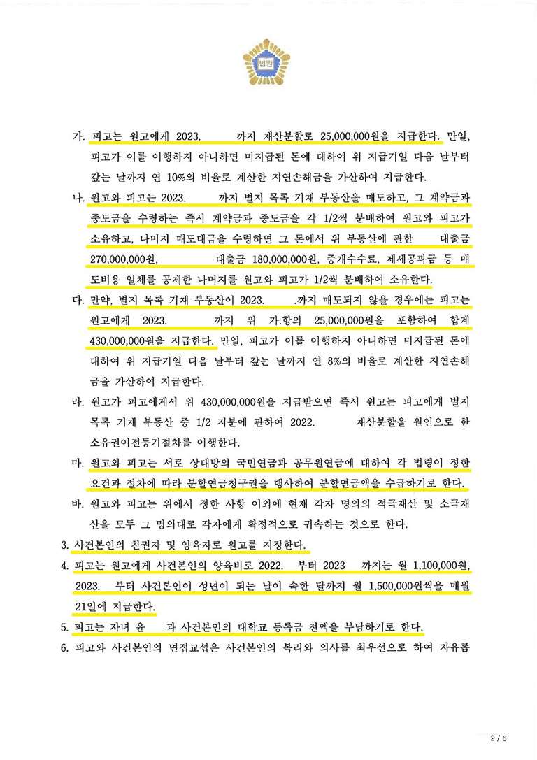 또한 조정기일에 양육비를 순차적으로 증액하기를 희망하고 자녀 2명의 대학등록금 전액을 남편이 부담하는 것으로 상대방 측을 적극 설득하였습니다.
