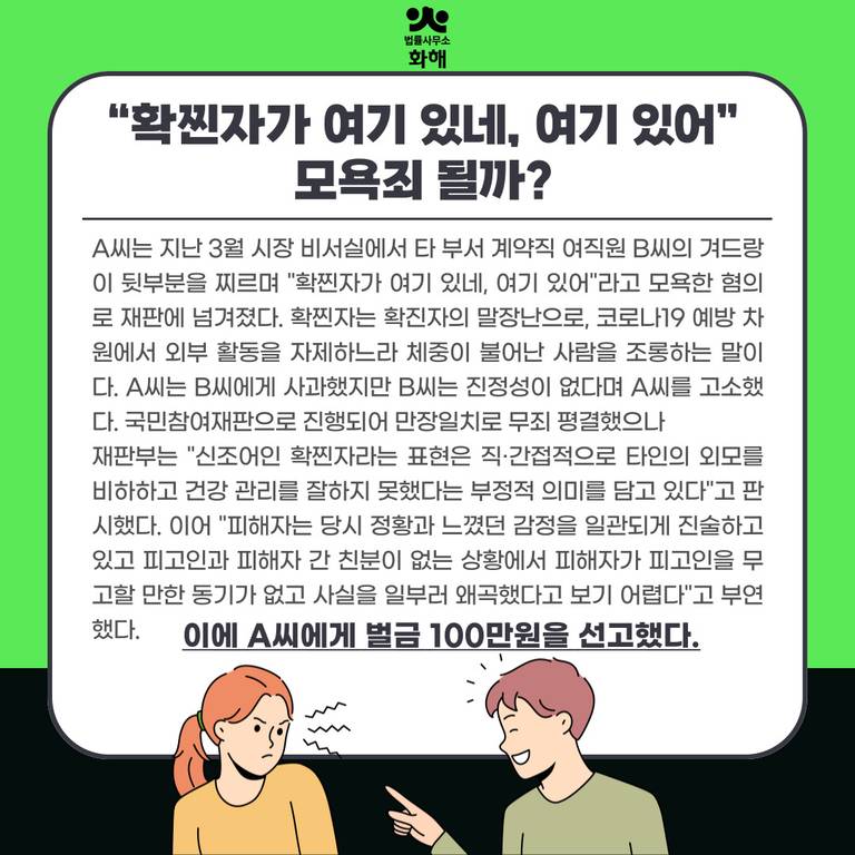 오늘은 법률사무소 화해와 함께 사례를 통해 모욕죄에 대해 알아보겠습니다.