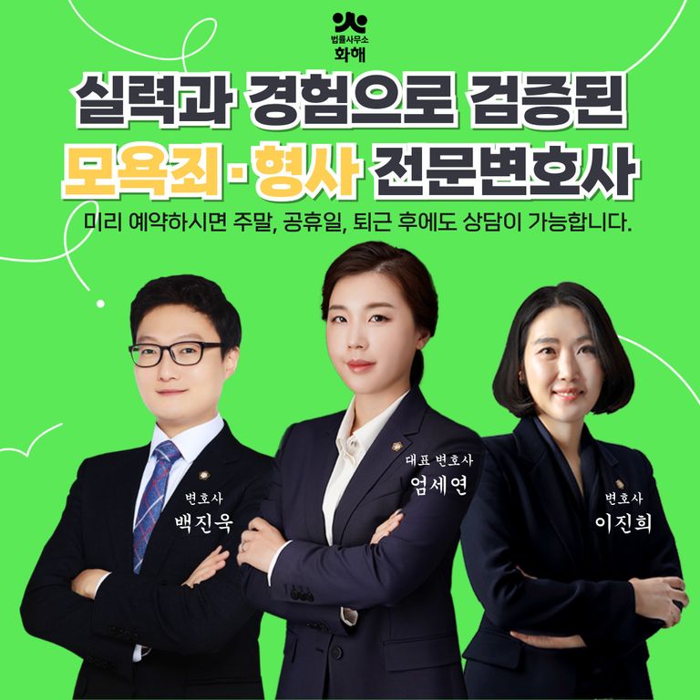 그렇기에 더욱 욱하는 심정에 내뱉은 한마디, 무심코 던진 한마디로 형사처벌의 갈림길에 서 있다면 제대로 된 경험과 실력을 갖춘 형사 전문변호사의 법률 조력이 필수일 텐데요. 사안을 꼼꼼하게 진단하고 어떻게 입증하느냐에 따라 결과가 달라지기에, 법률사무소 화해가 의뢰인의 이야기에 진심으로 귀 기울이며, 그 억울함을 해소할 수 있도록 곁에서 함께 하겠습니다.