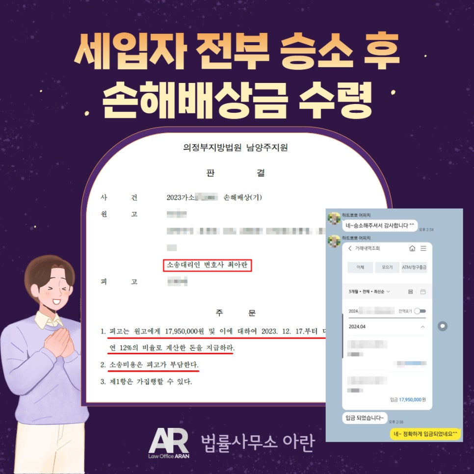 세입자 전부 승소, 깔끔하게 손해배상금까지 받아냄